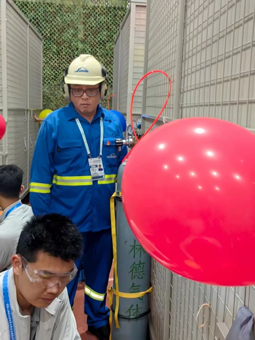 在这期间,为保障产品运输安全高效,北普公司提前对全部保障车辆进行维修保养;针对工作现场空间有限、人员较多的实际情况,公司专门定制了钢瓶推车,消除了钢瓶因手动挪动易发生碰撞、倒伏的隐患。此外,为确保充装过程的绝对安全,公司还明确要求,钢瓶到位后,必须用绑带与气球笼体固定,以免对现场操作人员造成伤害。可以说,在演练和正式活动中,北普公司始终将安全作为头等大事,对每一个细节都实施清单化管理,最终确保了气球充装保障任务的全过程安全。